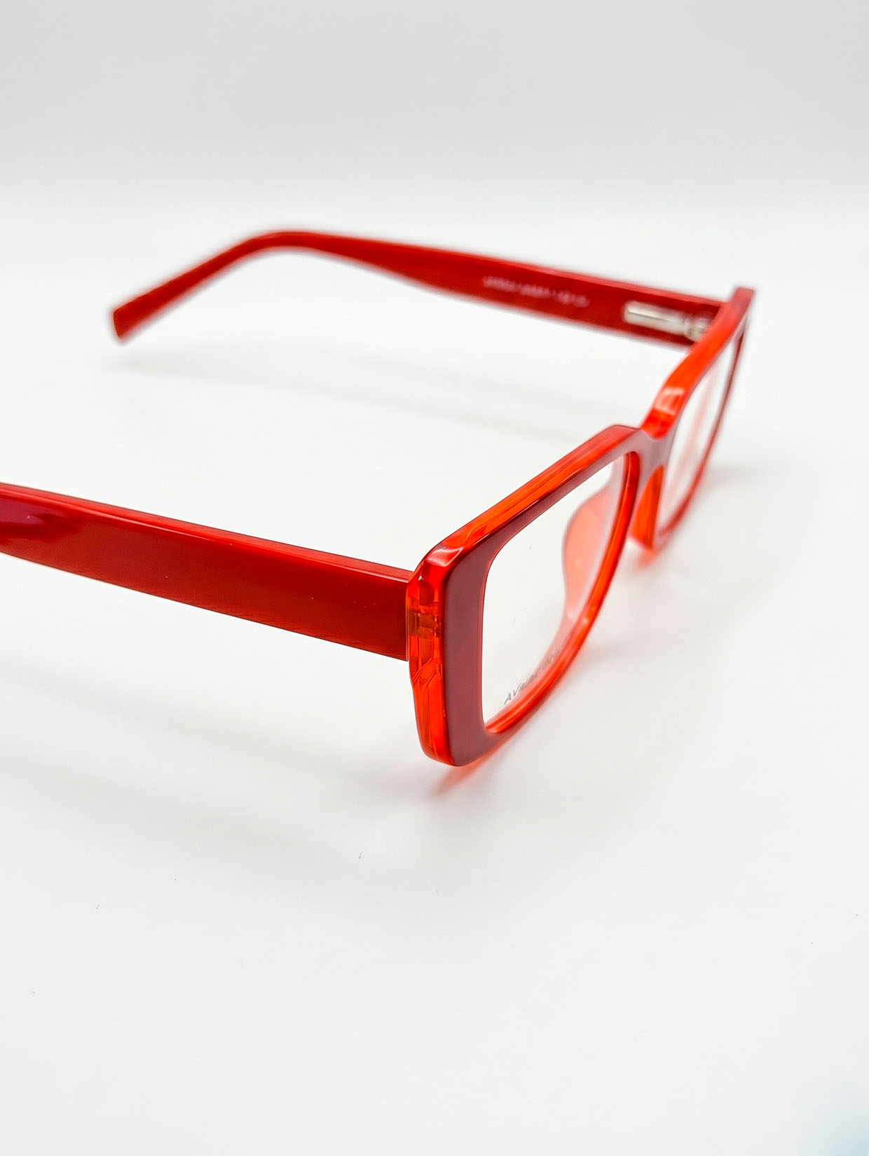 Armação em acetato vermelho de alto brilho: elegância e personalidade para iluminar o seu rosto.