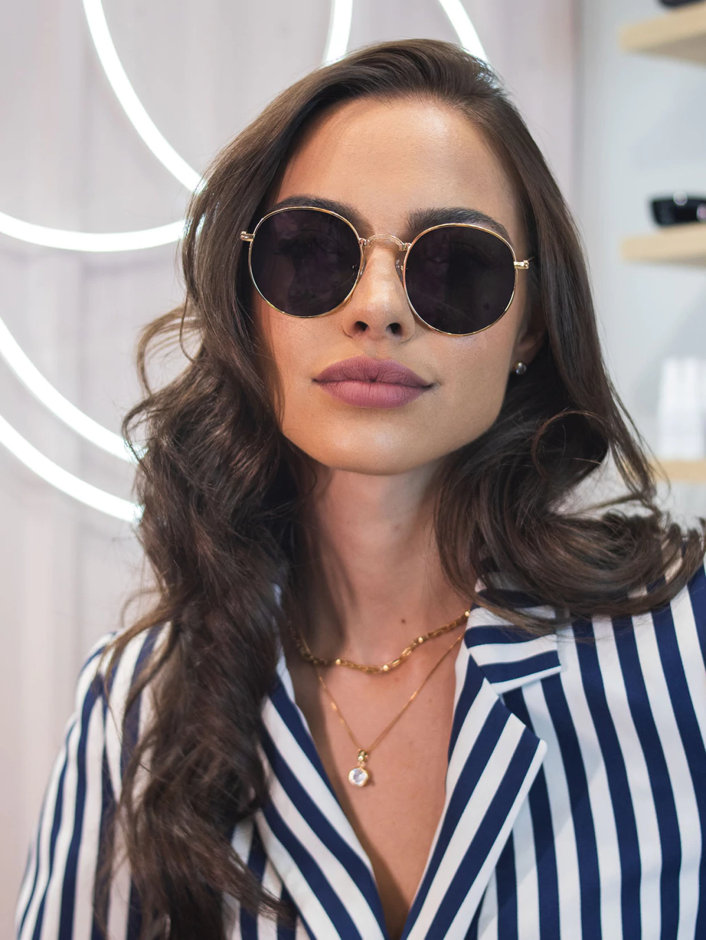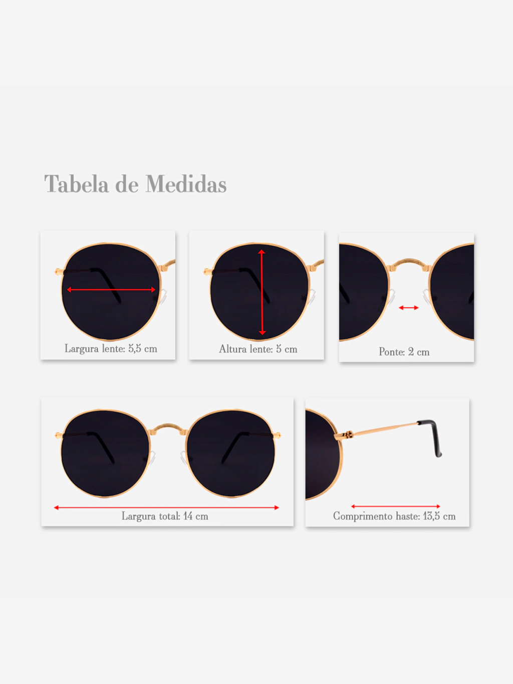O Óculos de Sol Round é um redondo feito metal anticorrosivo, armação reforçaca, mais robusca na parte inferior, óculos com ótimo acabamento com toque de sofisticação. Design moderno que garante um visual único e cheio de personalidade.